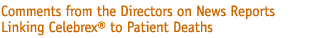 Editorial comment: The case reports of deaths from gastrointestinal hemorrhage in patients on Celebrex are worth noting, but the significance of these findings is unclear. Celebrex has been shown to have a lower GI toxicity profile based on short-term endoscopic studies showing less ulcers and gastric irritation compared to other NSAIDs. However, long term studies of the incidence of clinically significant GI bleeding are still forthcoming. These current reports may point out that Celebrex, while significantly safer that other NSAIDs, will continue to have some GI toxicity. It should be noted that these reports are extremely small in number in comparison to the large number of prescriptions written. Many of these prescriptions are undoubtedly written for patients with a greater risk of GI bleeding, such as the elderly, patients with prior ulcer disease or patients on anticoagulants. Practitioners should continue to use Celebrex with caution in patients with significant risk of GI bleeding.
